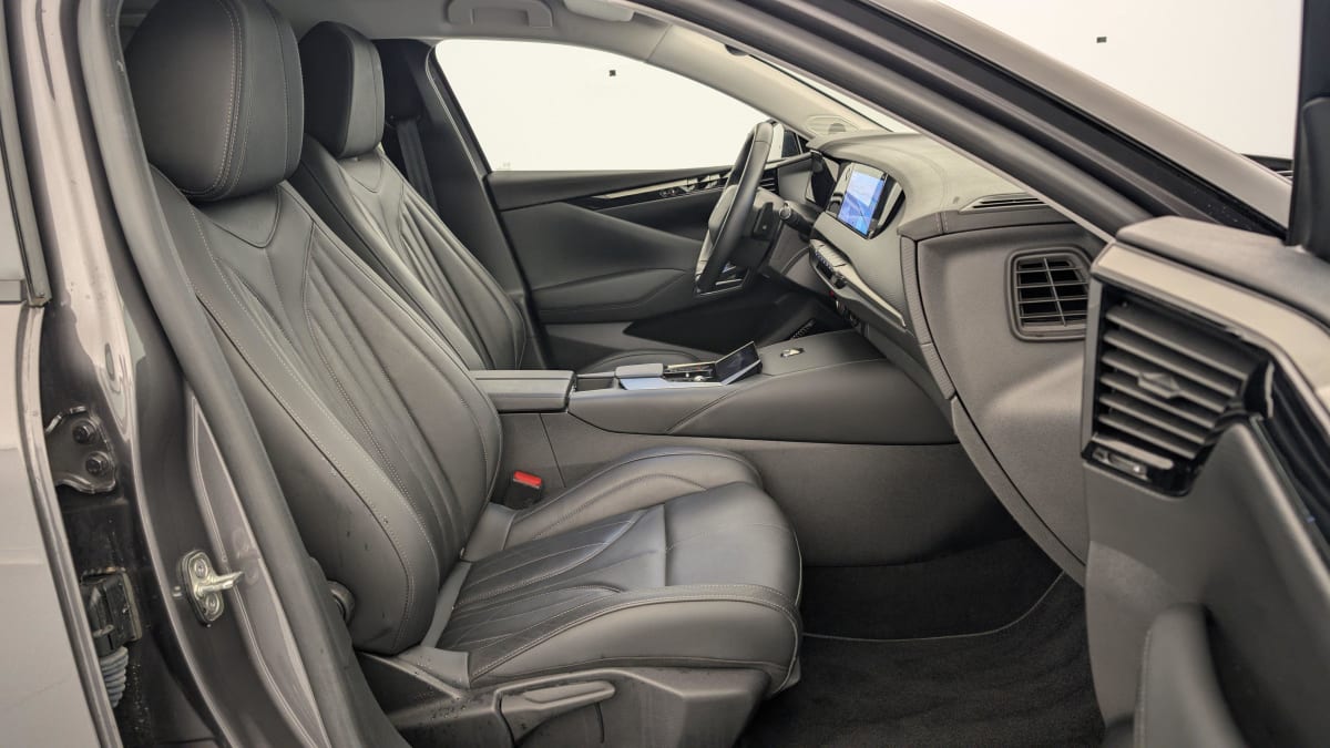intérieur cuir grainé noir basalte et toile ds : ciel de pavillon clair décors de panneaux de porte chrome guilloché volant en cuir fleur mistral console centrale en toile ds mistral planche de bord en toile ds noir basalte façon écaille panneaux de portes en toile ds noir basalte façon écaille sellerie en cuir grainé noir basalte et toile ds parties centrales des sièges av, partie centrale des sièges latéraux ar et partie av des appuie-tête en cuir. bourrelets latéraux des sièges av, accoudoir central et siège central ar, et parties latérales et ar des appuis tête en toile ds.