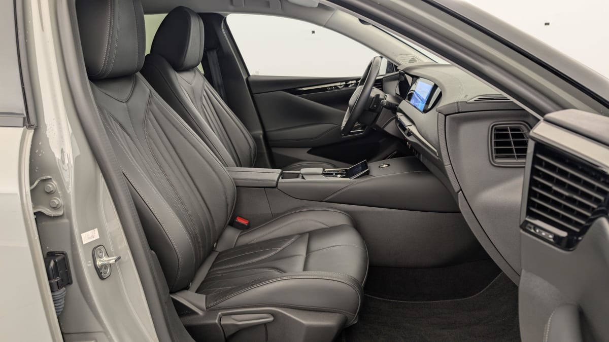 intérieur cuir grainé noir basalte et toile ds : ciel de pavillon clair décors de panneaux de porte chrome guilloché volant en cuir fleur mistral console centrale en toile ds mistral planche de bord en toile ds noir basalte façon écaille panneaux de portes en toile ds noir basalte façon écaille sellerie en cuir grainé noir basalte et toile ds