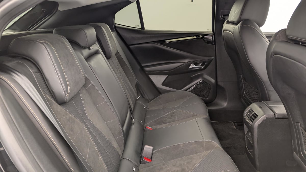 intérieur alcantara noir : planche de bord en alcantara ciel de pavillon clair décors de panneaux de porte chrome guilloché volant cuir fleur mistral console en toile ds noir basalte panneaux de porte en alcantara et toile ds noir basalte sellerie en tissu tressé basalte avec alcantara et toile ds
