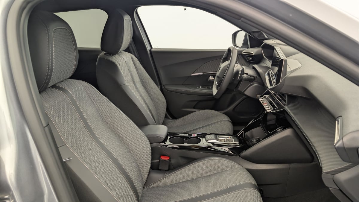 eléments de style intérieur: panneaux de portes av avec décor carbone et baguette noir brillant avec tampographie quartz, accoudoirs de porte av/ar tissu/tep isabella avec surpiqûre quartz
